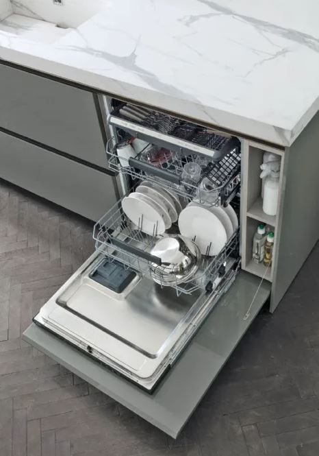 Il modello Color Trend di Stosa non è solo estetica: è anche praticità. Le ante sono dotate di cerniere ammortizzate, i cestoni con guide moderne, e ogni modulo può includere accessori ed elettrodomestici delle migliori marche, integrati in modo armonico. Il brand permette inoltre top di diversi materiali (quarzo, laminato, grès, ecc.), zoccoli di altezze varie, scelta di finiture per le gole e maniglie, in modo da soddisfare esigenze estetiche e funzionali.