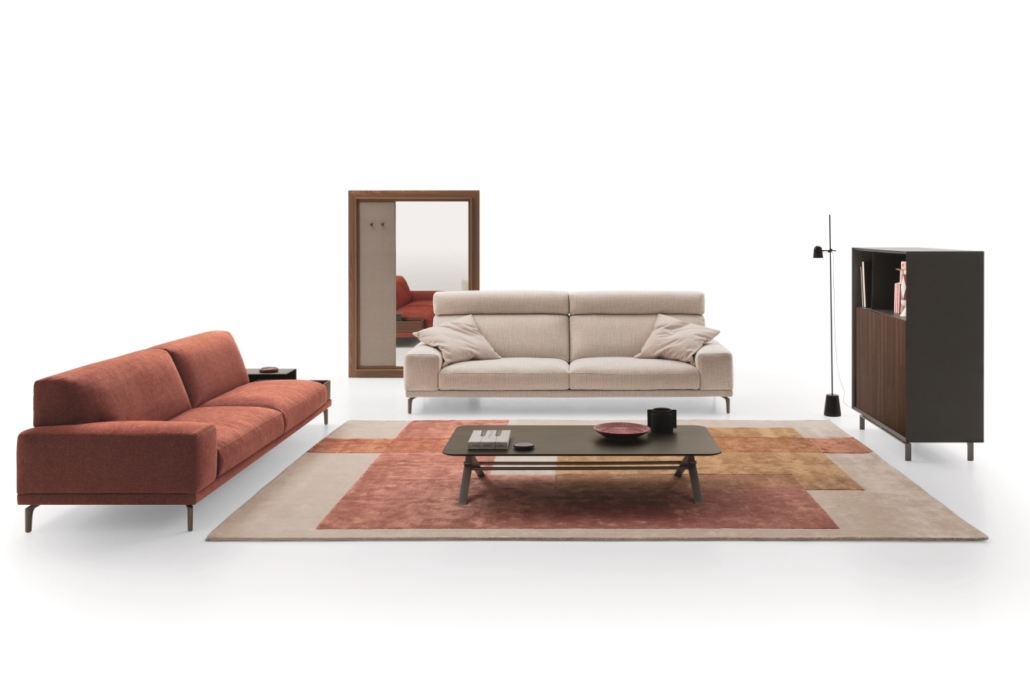 Blake si distingue anche per i suoi dettagli estetici, come i piedini in metallo con finitura laccata, che conferiscono leggerezza alla struttura e un tocco di eleganza discreta. La modularità del divano permette di creare composizioni lineari, angolari o componibili, adattandosi perfettamente a qualsiasi ambiente, sia esso un ampio salotto o uno spazio più contenuto.