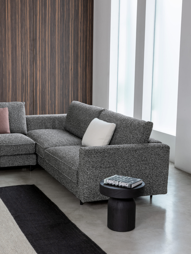 L’esperienza di seduta offerta dal Ralph è ineguagliabile grazie all’attenta stratificazione delle imbottiture: i cuscini di seduta sono realizzati in poliuretano espanso a densità differenziate, concepiti per offrire un sostegno ergonomico che mantiene la forma, mentre i cuscini di schienale sono generosamente riempiti con piuma d’oca sterilizzata, miscelata sapientemente con fibra di poliestere e fiocchi di poliuretano, creando un effetto di morbidezza lussuosa che invita al totale relax, confermando l’impegno del brand nel comfort assoluto.