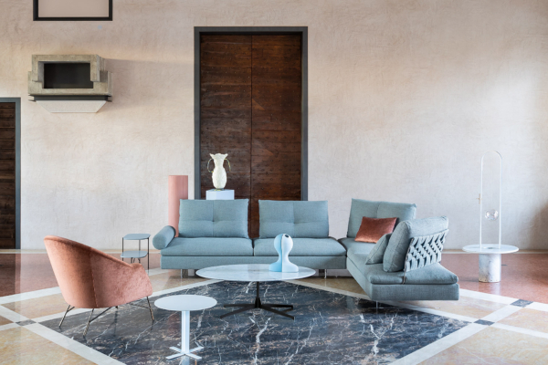 Divano PIANCA mod. Time con chaise lounge in tessuto sfoderabile Cat. B colore Brera