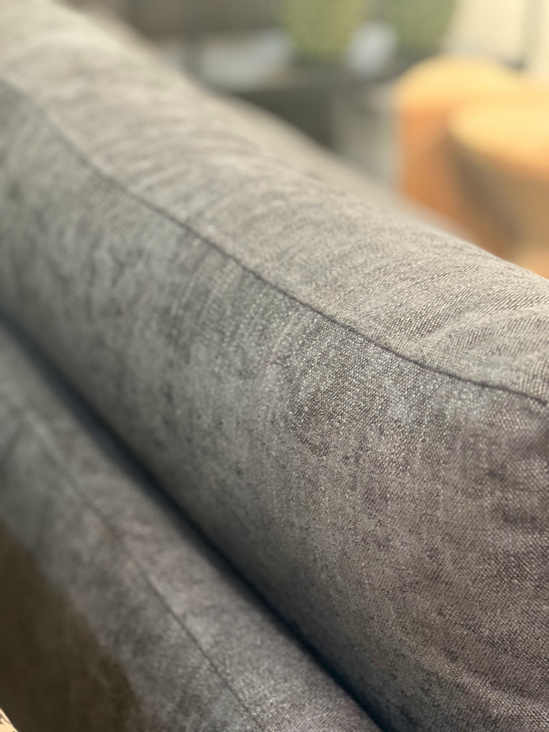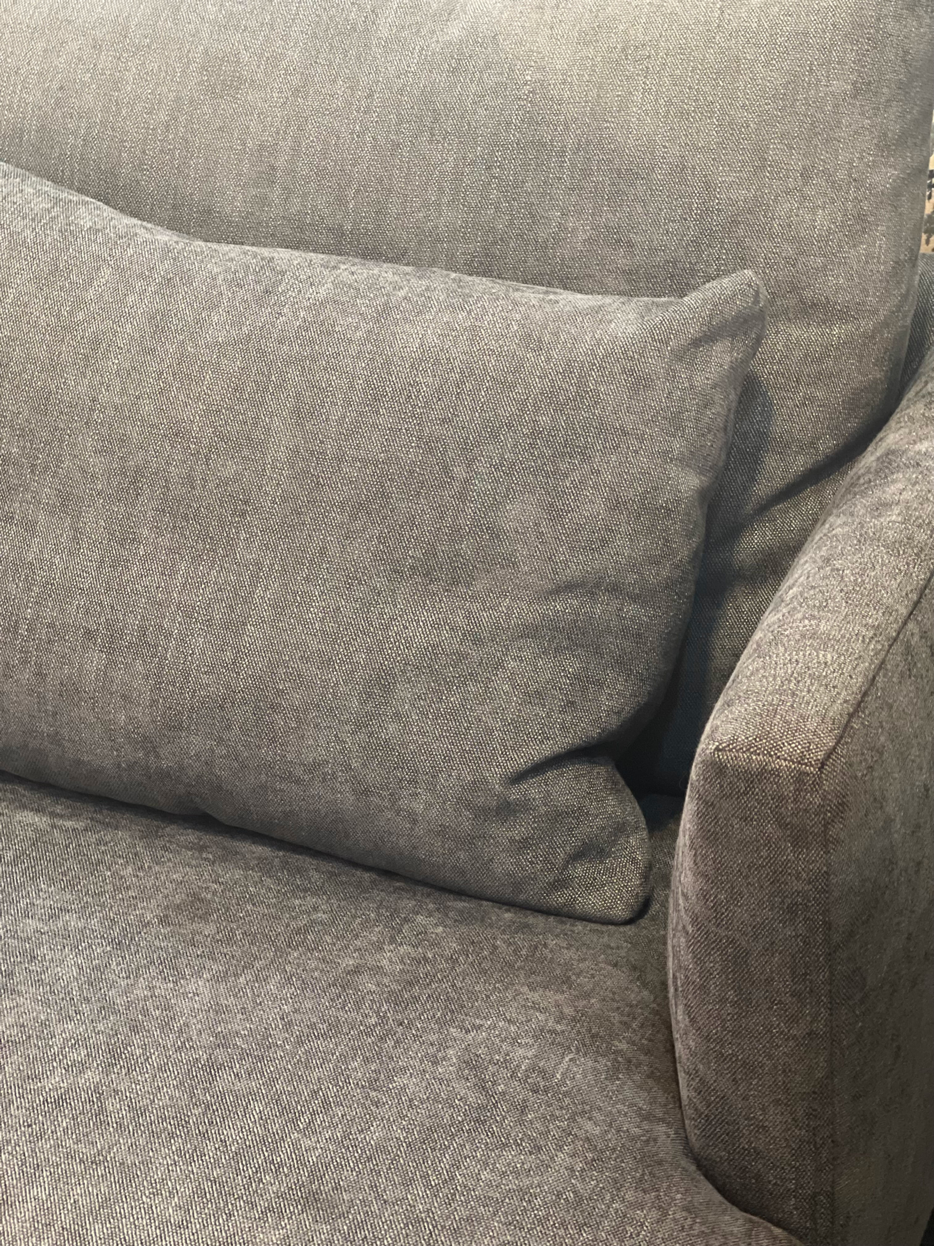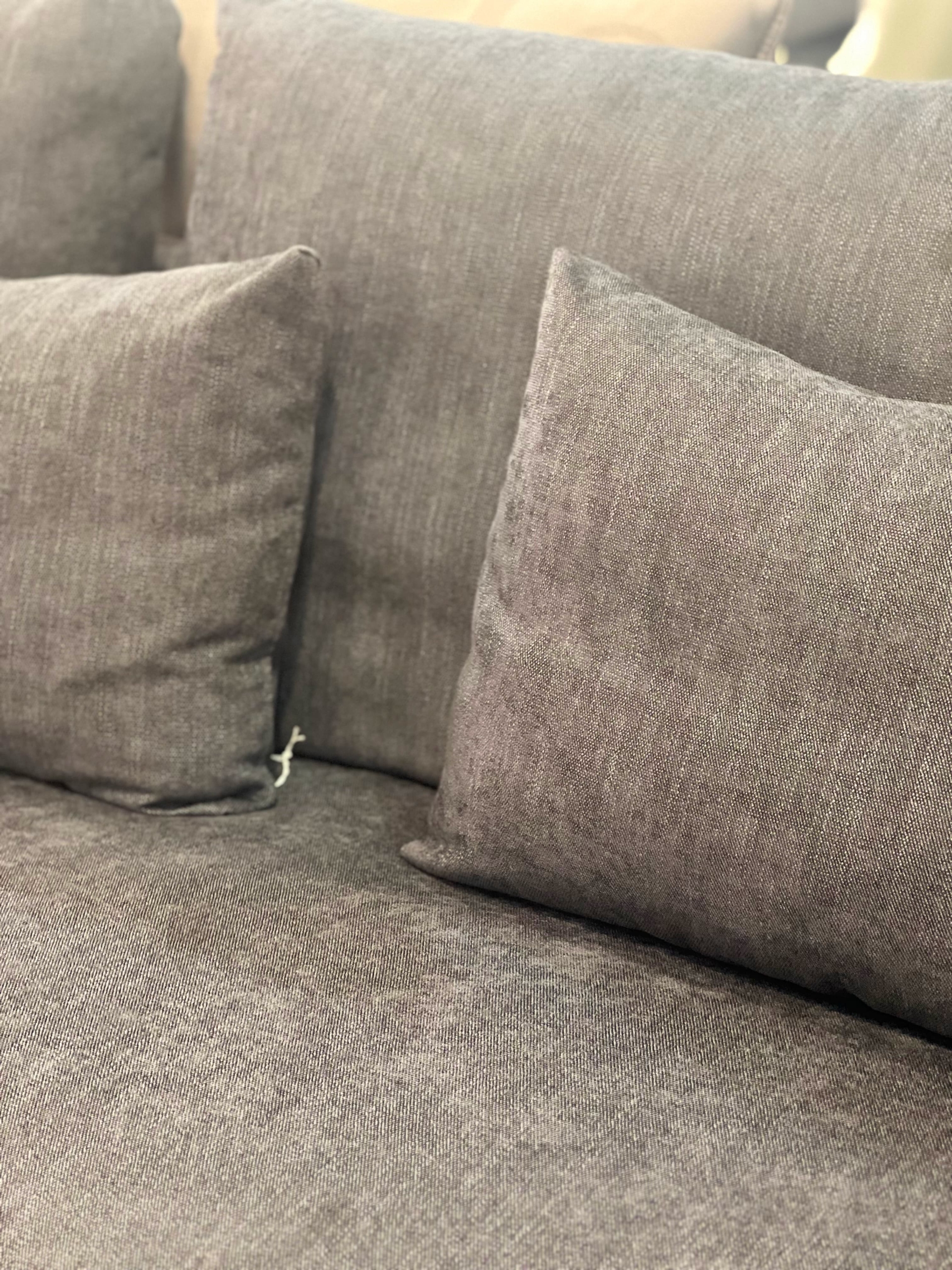 L’imbottitura della seduta è composta da poliuretano espanso a densità differenziate, con uno strato di piuma d’oca o anatra, offrendo un comfort ottimale e un supporto ergonomico. I cuscini di schienale, anch’essi in misto piuma e fibra di poliestere, sono progettati per adattarsi alla forma del corpo, assicurando un sostegno confortevole durante l’uso. Tutti i cuscini sono rivestiti in tessuto antipiuma 100% cotone, facilmente sfoderabili per una manutenzione pratica e igienica.