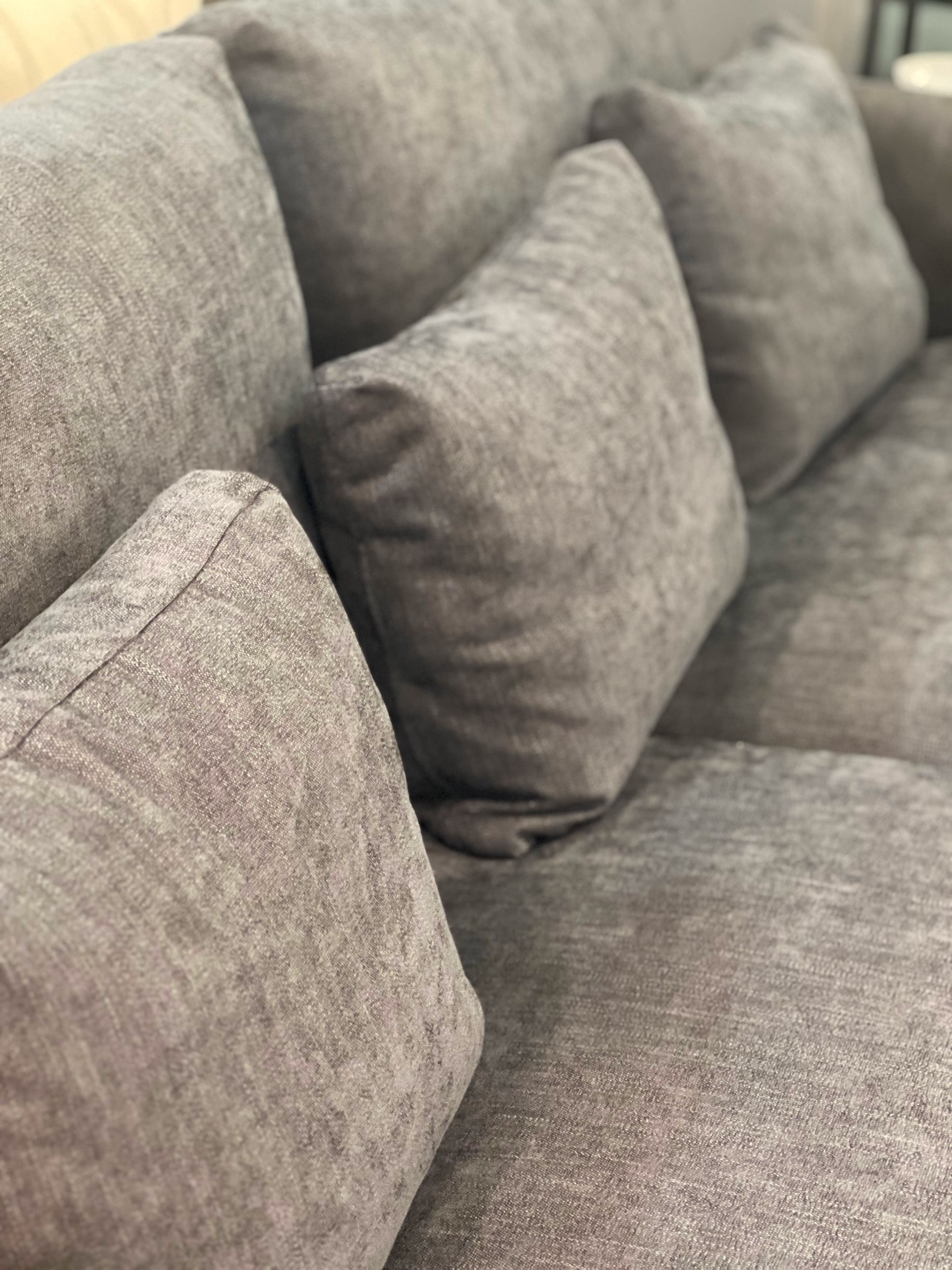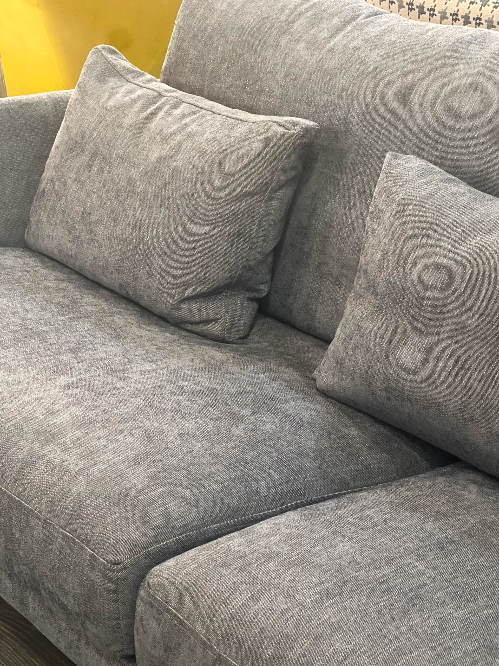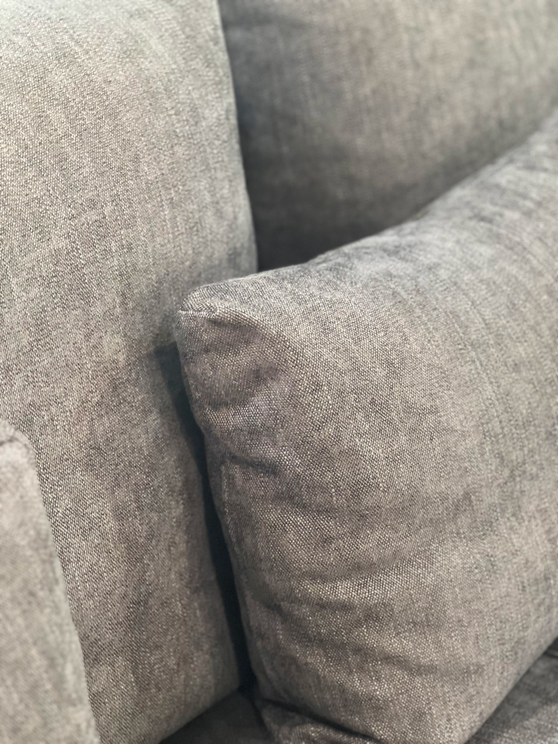 L’imbottitura della seduta è composta da poliuretano espanso a densità differenziate, con uno strato di piuma d’oca o anatra, offrendo un comfort ottimale e un supporto ergonomico. I cuscini di schienale, anch’essi in misto piuma e fibra di poliestere, sono progettati per adattarsi alla forma del corpo, assicurando un sostegno confortevole durante l’uso. Tutti i cuscini sono rivestiti in tessuto antipiuma 100% cotone, facilmente sfoderabili per una manutenzione pratica e igienica.