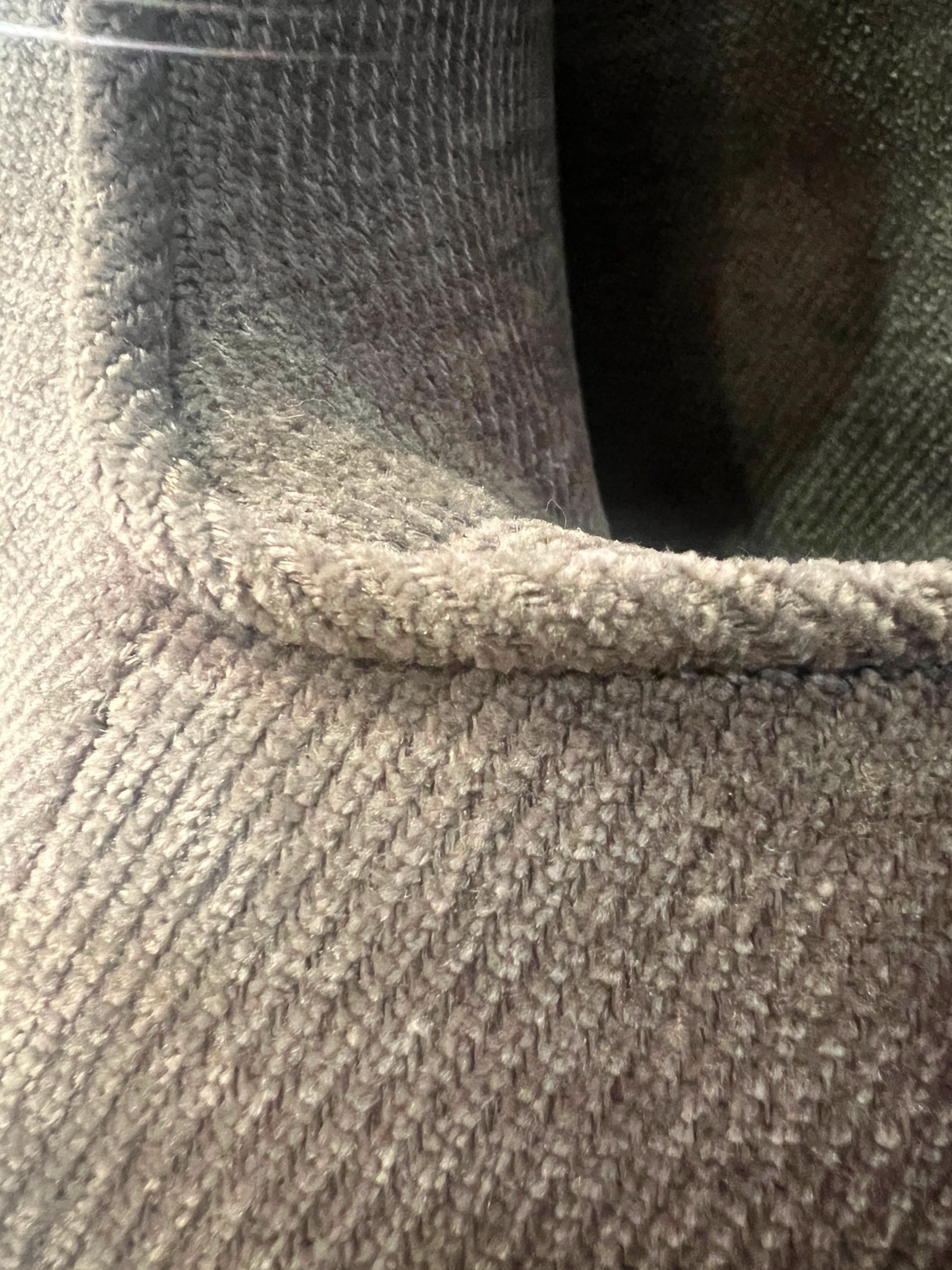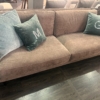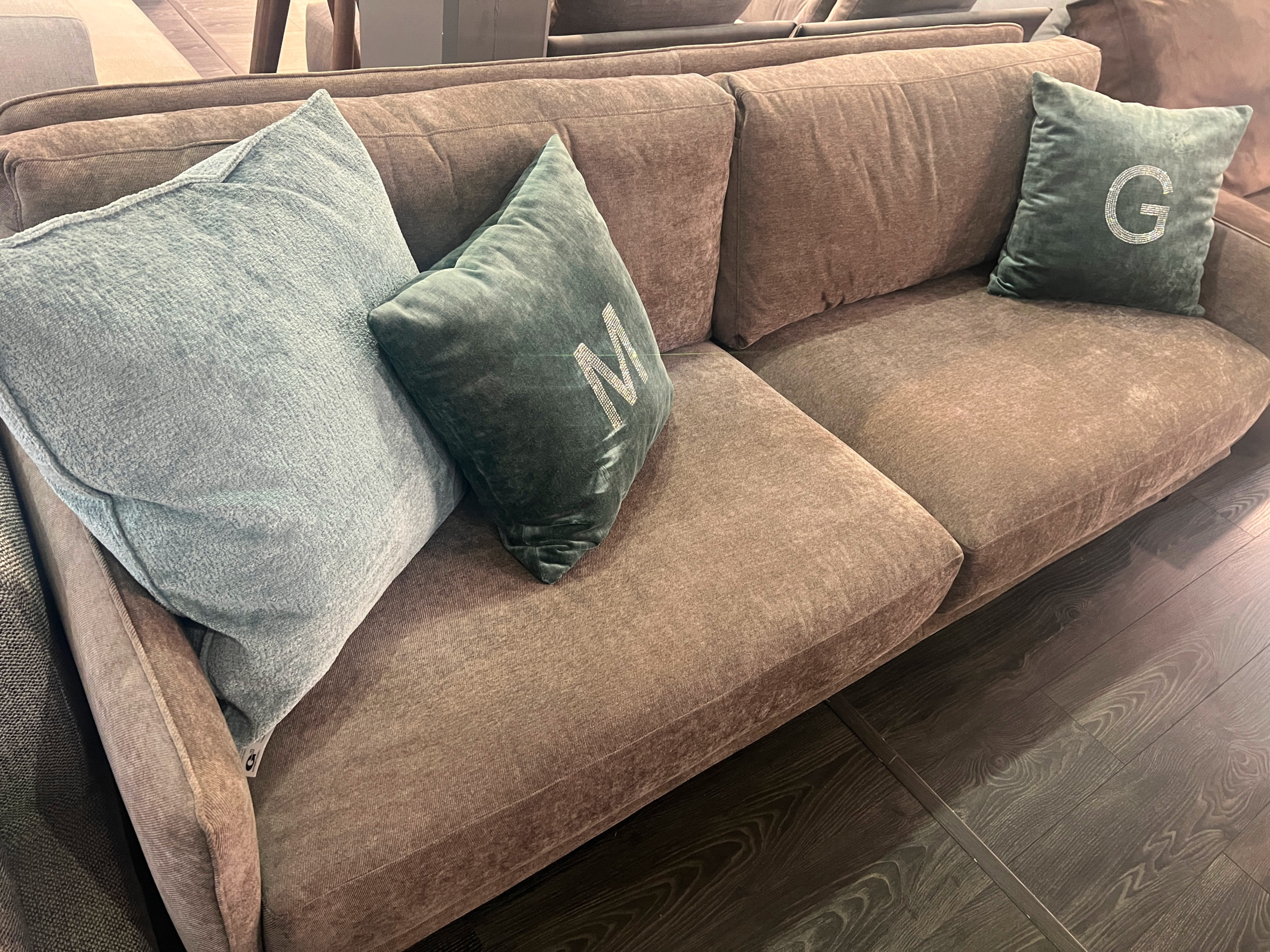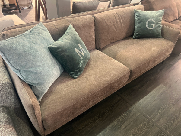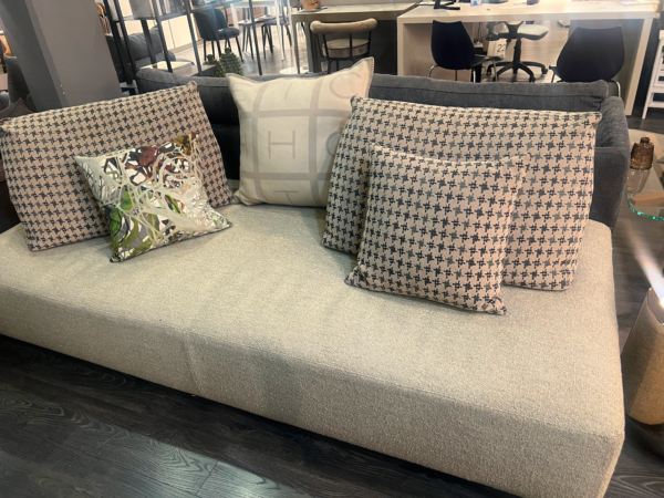 L’imbottitura combina poliuretano espanso indeformabile e piuma d’oca (nei cuscini dello schienale), dando quel mix di sostegno e morbidezza tipico dei divani di alta fascia.