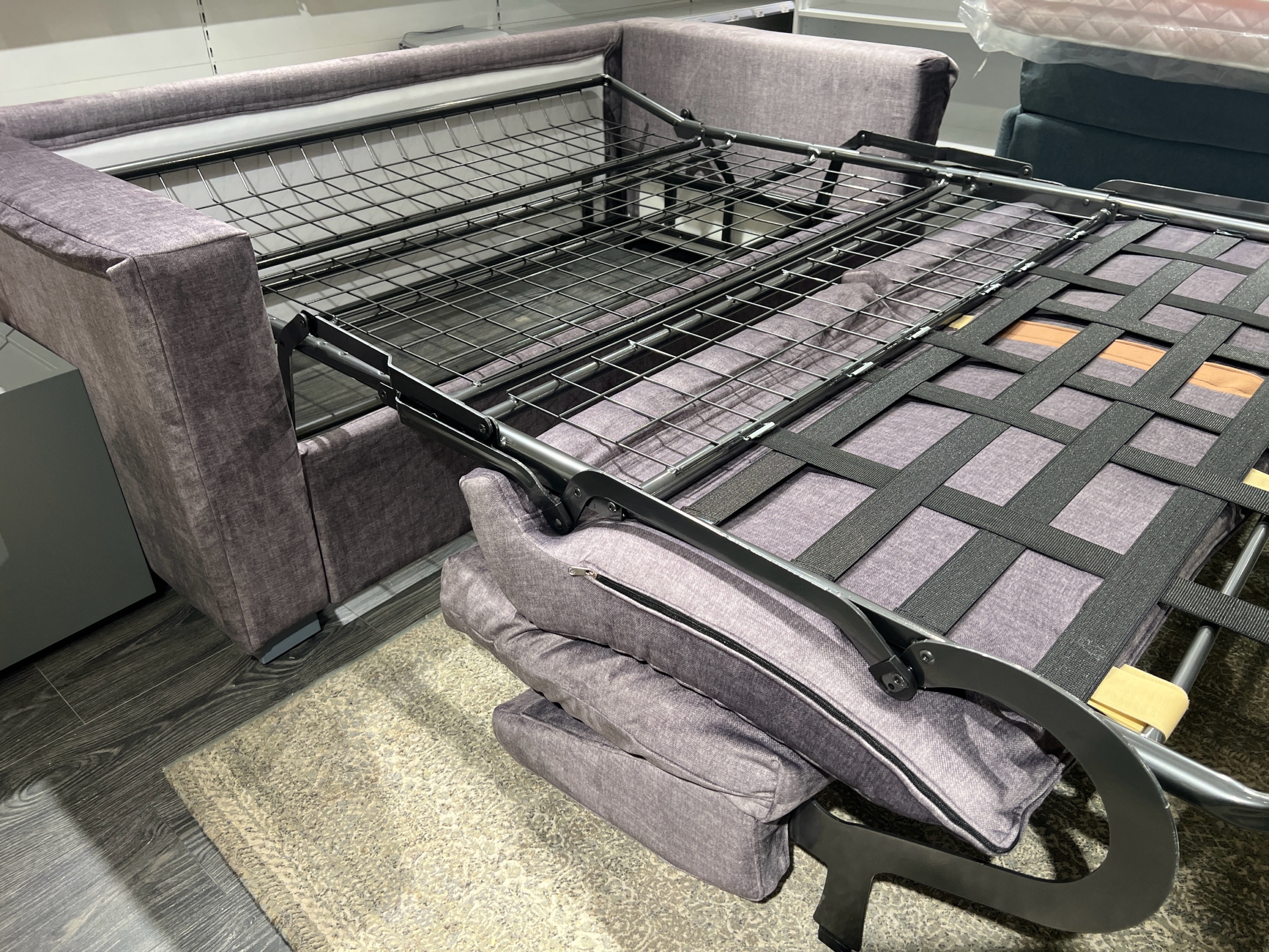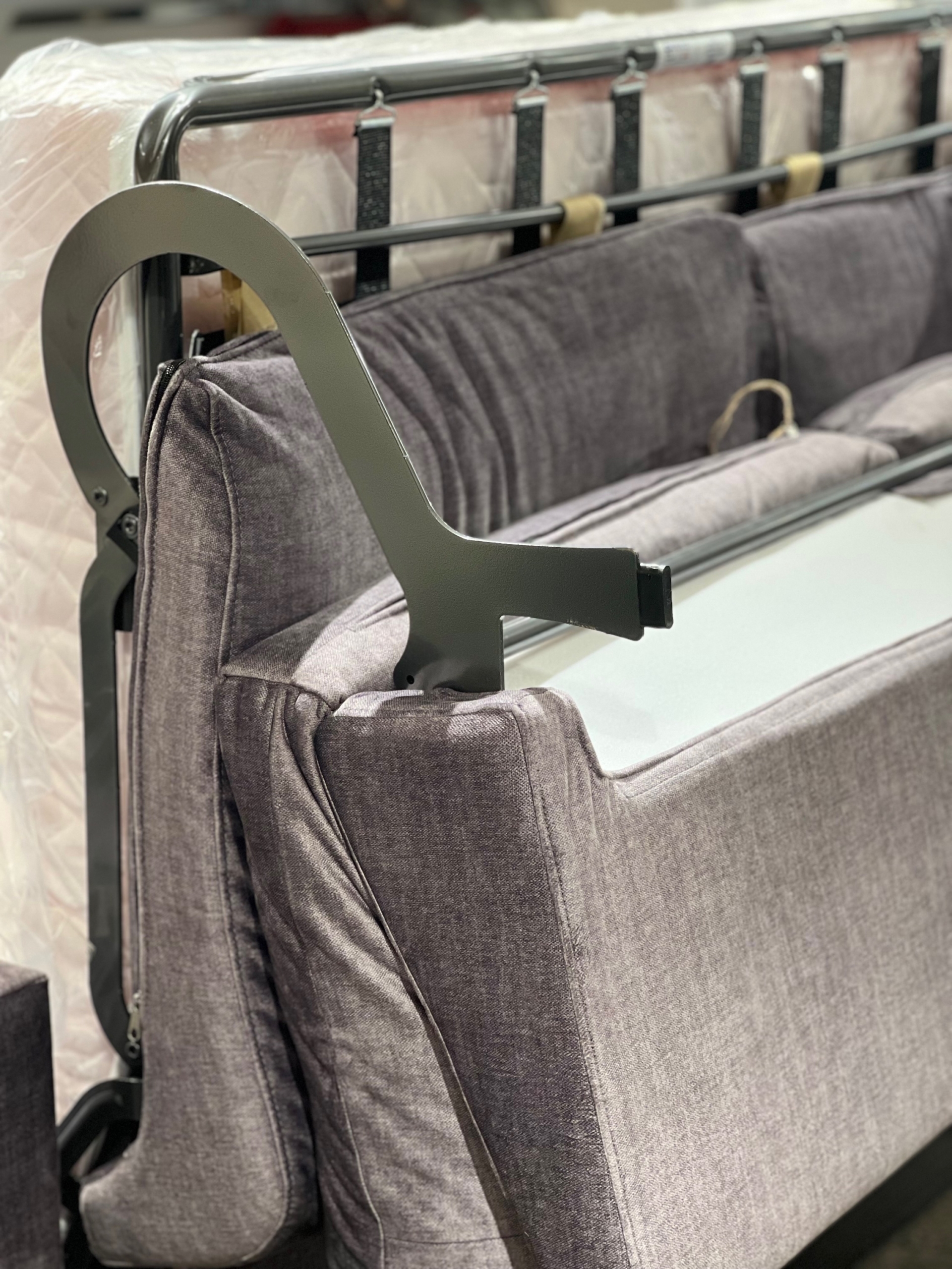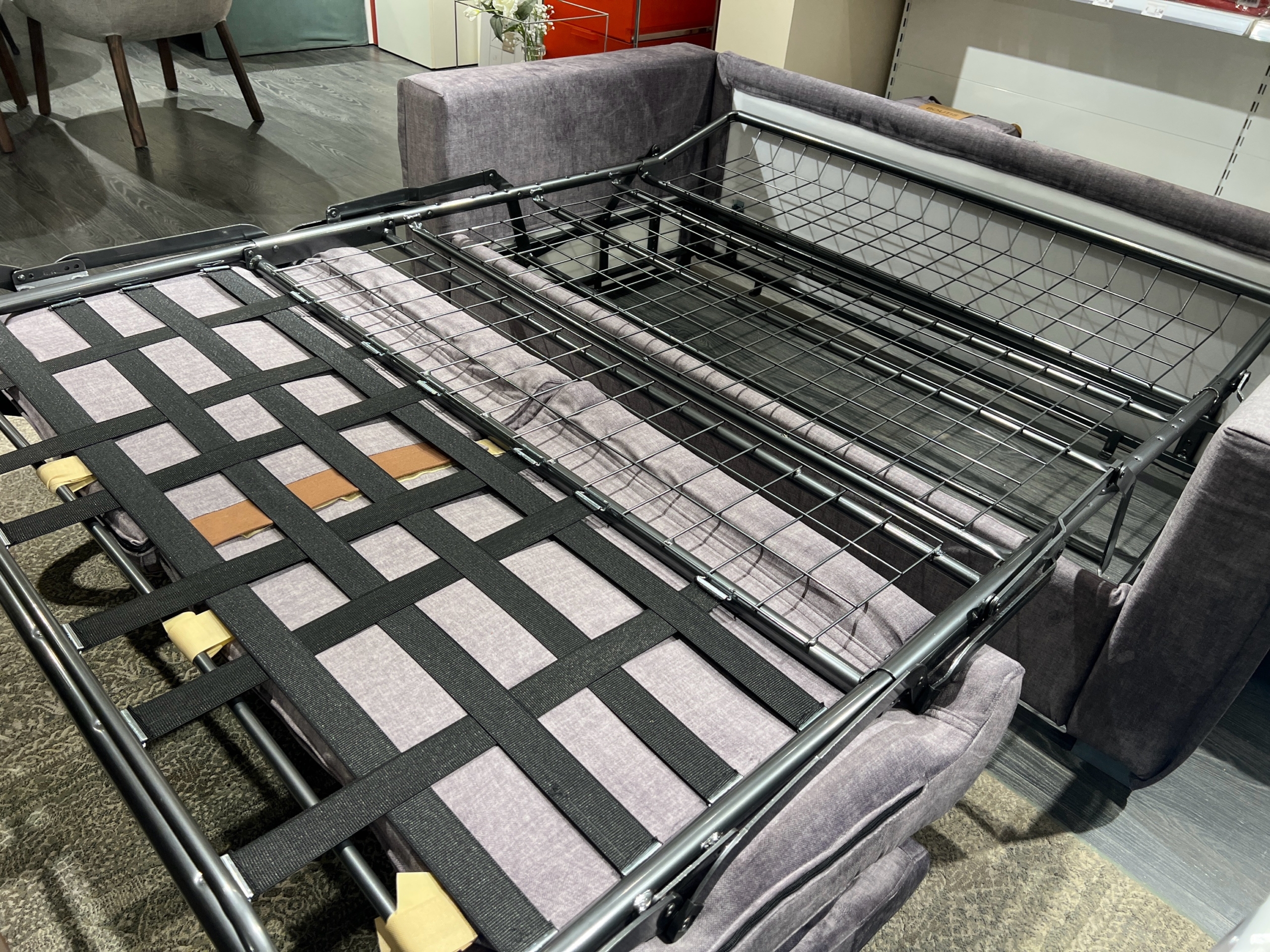 Il meccanismo di apertura del divano letto Bold è uno dei suoi punti di forza. Fluido, robusto e semplice da azionare, consente di trasformare il divano in un letto confortevole in pochi secondi, senza dover rimuovere i cuscini. Il sistema di apertura frontale, studiato per garantire praticità d’uso, rivela un materasso di qualità, ideale anche per un uso quotidiano. La rete a maglia elettrosaldata o a doghe, a seconda della configurazione scelta, offre un supporto ergonomico e una distribuzione uniforme del peso, favorendo un riposo corretto e rigenerante. Il materasso, disponibile in diverse varianti, combina densità e traspirabilità, rispondendo alle esigenze di chi desidera un letto aggiuntivo che non sia un compromesso.