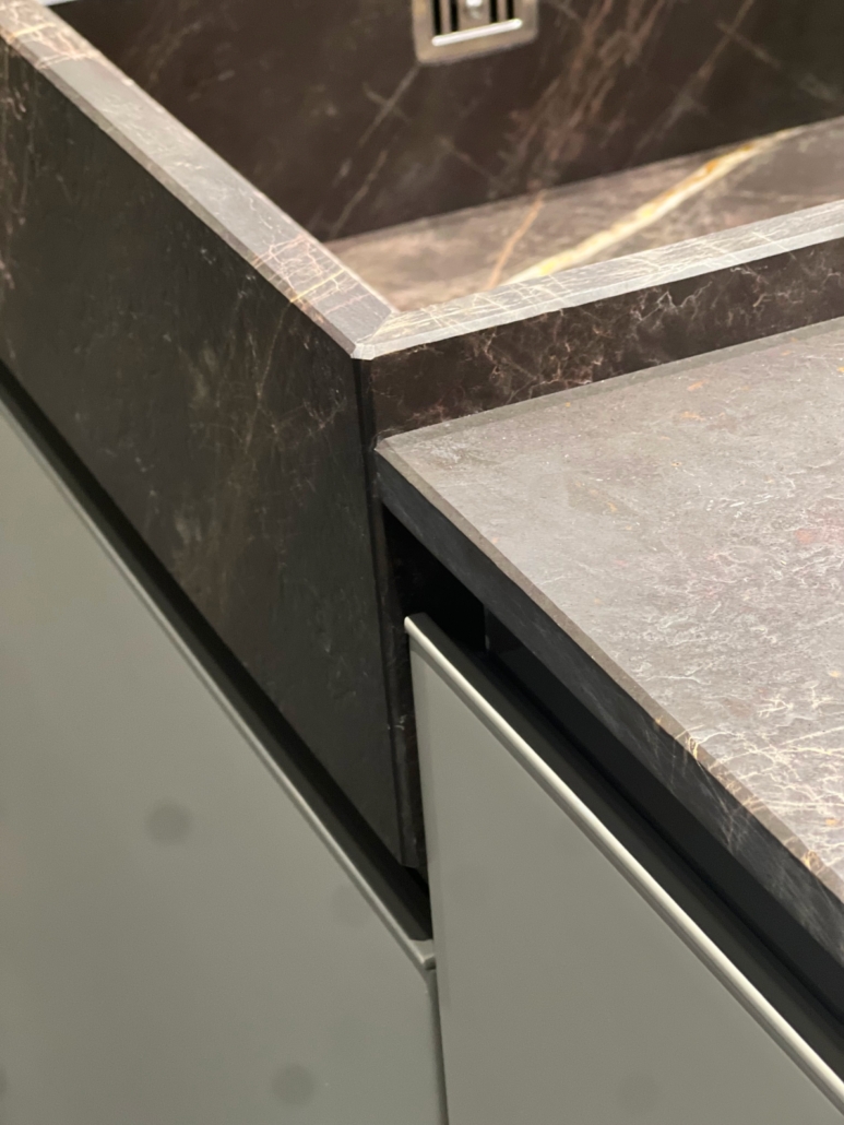 Un altro elemento che rende il modello Ernestomeda Soul particolarmente interessante è l’attenzione all’ergonomia: il pensile In-Line, per esempio, ha un sistema di apertura/chiusura nascosto nei fianchi laterali, ciò rende la linea pulita esteticamente e la superficie continua, eliminando elementi visivi di disturbo; il tavolo Cyclos, che può trasformarsi da piano snack a tavola da pranzo ruotando, risponde alle esigenze di cambiamento della giornata; il tagliere scorrevole Quick con alzatina Stand Up permette di sfruttare al meglio lo spazio tra la zona lavaggio e la zona cottura, oltre a offrire superfici protette e sanificabili. Anche la zona lavaggio Bay è un monoblocco spazioso, che può essere realizzato in acciaio, quarzo, pietre pregiate, Corian®, e che ricorda la monumentalità dei lavabi antichi ma con tecnologia d’avanguardia.