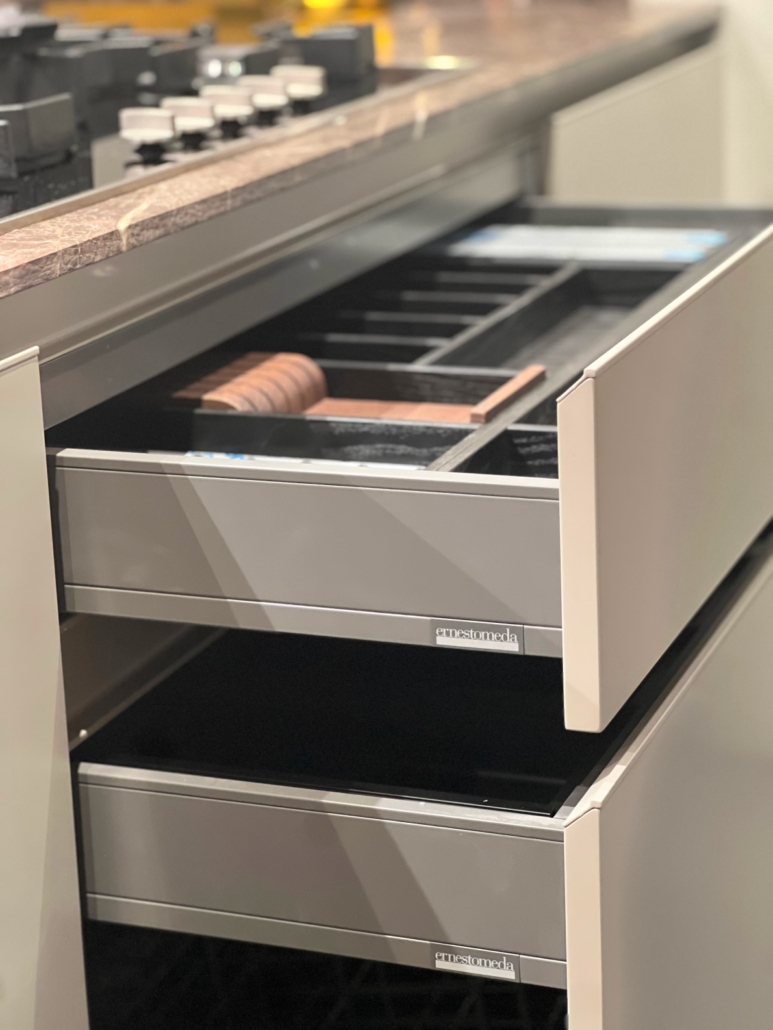 La cucina Ernestomeda Soul, progettata da Giuseppe Bavuso per il brand Ernestomeda, è una proposta che unisce sapientemente estetica contemporanea e richieste funzionali, pensata per chi vive la cucina non solo come ambiente operativo ma anche come cuore emotivo della casa. È un modello che vuole raccontare una storia fatta di equilibrio, materiali ricercati, dettagli tecnologici e soluzioni che facilitano la vita quotidiana, senza rinunciare allo stile.
