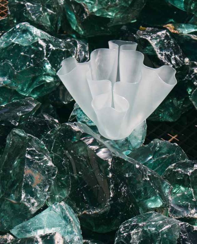 La forma, che ricorda un foglio di carta piegato delicatamente, evoca movimento e fluidità, mentre l’apertura verso l’alto suggerisce una continua interazione tra vuoto e pieno, creando giochi di luce e ombra che cambiano a seconda dell’ambiente e della direzione da cui viene osservato. Ogni esemplare è unico, perché la lavorazione artigianale comporta minime variazioni di spessore, trasparenza e tonalità, rendendo ogni vaso un pezzo distintivo e personale, capace di raccontare una storia di maestria e attenzione ai dettagli. La trasparenza del vetro permette di apprezzare la purezza delle linee e la morbidezza delle curve, mentre alcune varianti in vetro satinato o colorato offrono soluzioni versatili per adattarsi a diversi stili di arredamento, dal minimalismo più rigoroso fino agli spazi più classici ed eleganti.