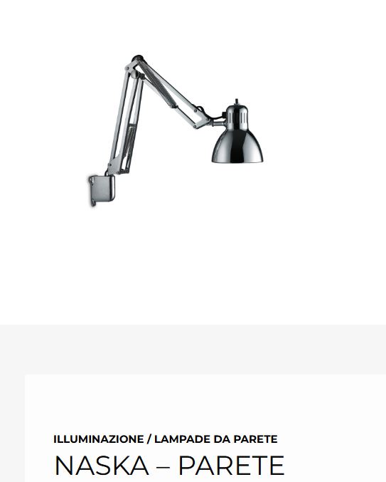 La struttura articolata consente di adattare la lampada a molteplici situazioni: può illuminare una zona lettura accogliente, diventare un complemento per un ufficio creativo, oppure offrire un’illuminazione d’accento per valorizzare dettagli architettonici o opere d’arte. Grazie al meccanismo snodabile, è possibile regolare l’inclinazione e la distanza dalla parete, ottenendo una luce mirata e modulabile senza dover ricorrere a ulteriori elementi illuminanti. Questo livello di personalizzazione rende la lampada Naska uno strumento estremamente versatile, in grado di rispondere alle esigenze pratiche quotidiane senza sacrificare lo stile.