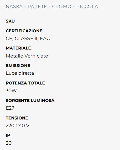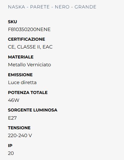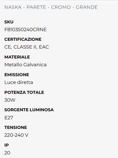 In sintesi, la lampada Naska da parete di FontanaArte non è soltanto un oggetto luminoso, ma un complemento d’arredo versatile e raffinato, in grado di unire estetica industriale, materiali pregiati, funzionalità e personalizzazione dell’illuminazione in un unico prodotto, rappresentando l’eccellenza del design italiano contemporaneo.