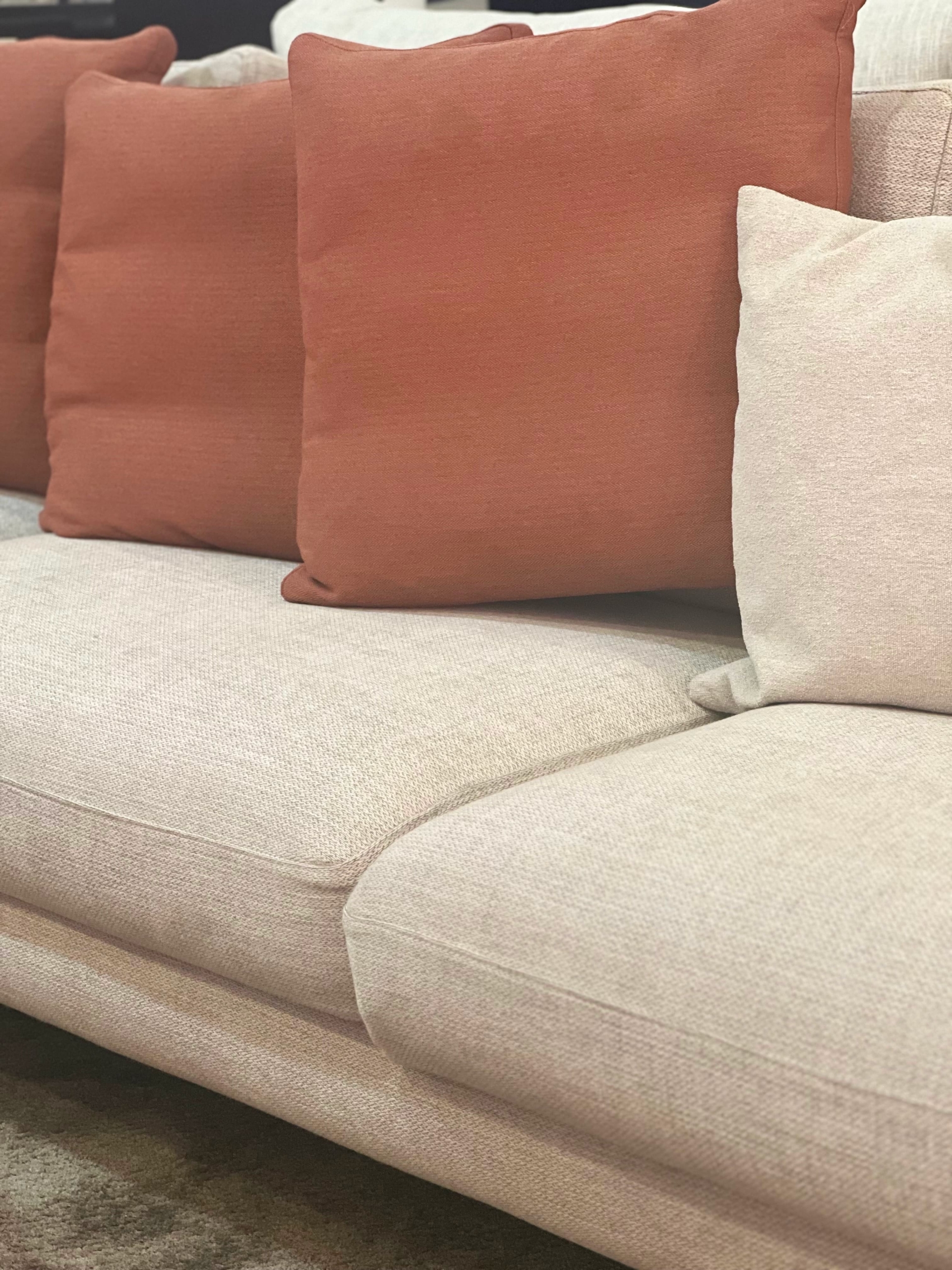 Il divano Time di Pianca rappresenta un equilibrio perfetto tra eleganza contemporanea e comfort senza compromessi, combinando linee essenziali con dettagli raffinati che catturano immediatamente lo sguardo. Ogni elemento del divano è progettato per valorizzare lo spazio circostante, dai braccioli inclinati e svasati al basamento affusolato, capace di conferire leggerezza visiva e armonia estetica a qualsiasi living moderno o classico reinterpretato. La modularità della struttura permette di configurare il divano secondo le proprie esigenze, sia in soluzioni lineari che angolari, creando ambienti personalizzati e accoglienti che riflettono lo stile di chi li abita.