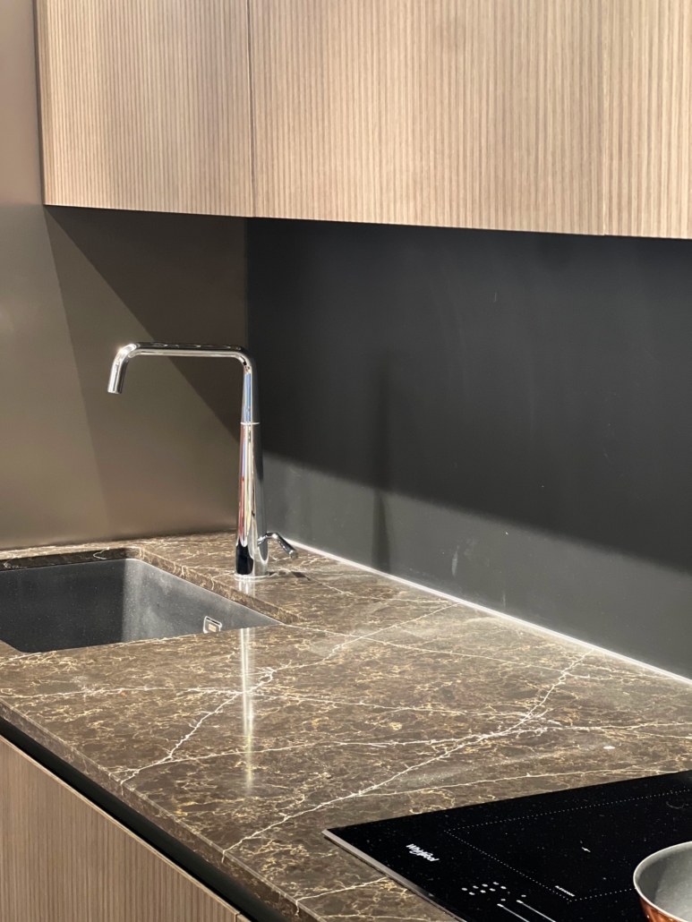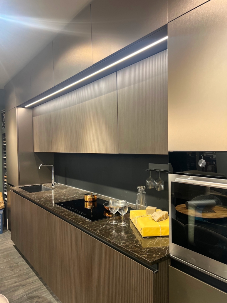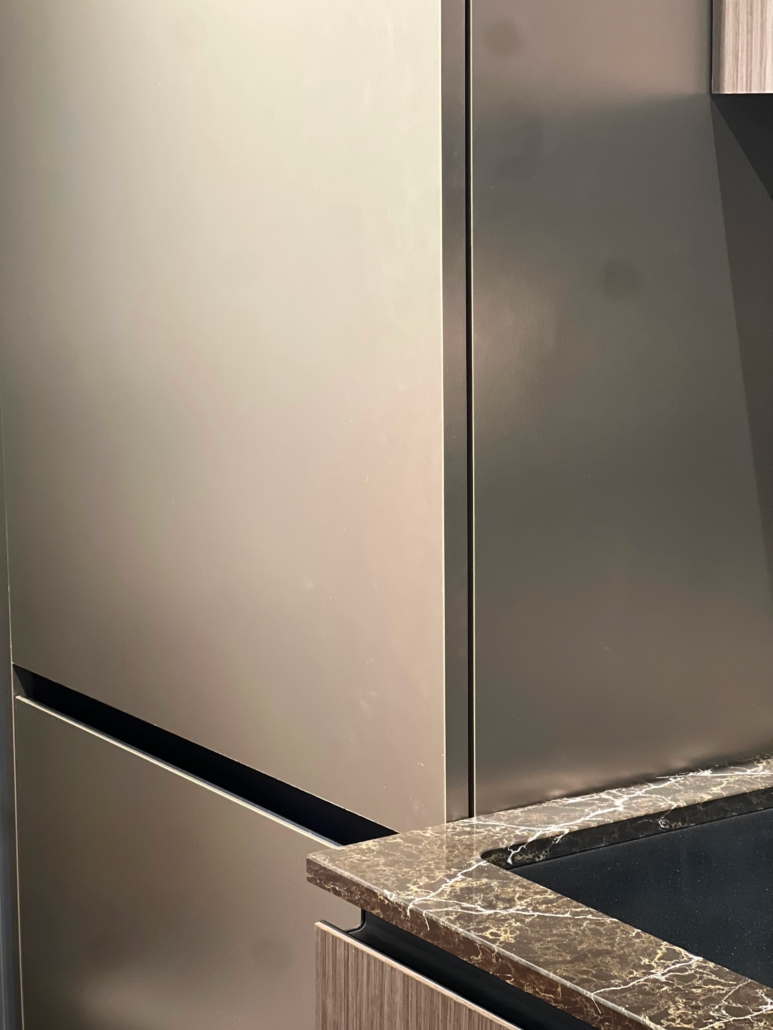 I materiali scelti per la cucina Stosa Metropolis sono il risultato di ricerca e innovazione. Laminati materici, PET, Fenix®, vetro cannettato o semitrasparente, essenze termo strutturate e laccati soft touch garantiscono resistenza a graffi e umidità, facilità di pulizia e qualità tattile. Le gole possono essere piatte o scavate, con possibilità di integrare maniglie a L o diagonali per variare l’aspetto estetico e rendere più comoda l’apertura dei frontali. Questa varietà di finiture consente di creare contrasti cromatici e materici, combinando tonalità calde e fredde, superfici lucide e opache, effetti metallici o naturali, rendendo ogni composizione unica e personale.