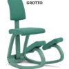 La struttura, in legno di faggio curvato a vapore, unisce leggerezza visiva e resistenza strutturale, creando una base fluida che accompagna i movimenti naturali del corpo. I due cuscini per le ginocchia, inclinati in avanti, invitano a una posizione aperta che riduce la pressione sulla zona lombare e favorisce l’allineamento fisiologico della colonna vertebrale. In questa postura, il corpo rimane attivo, i muscoli si rafforzano e la respirazione diventa più profonda, favorendo una concentrazione mentale più stabile e duratura durante le ore di lavoro o studio.