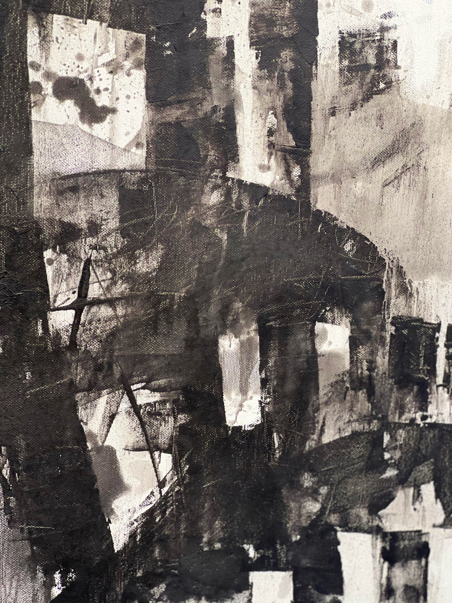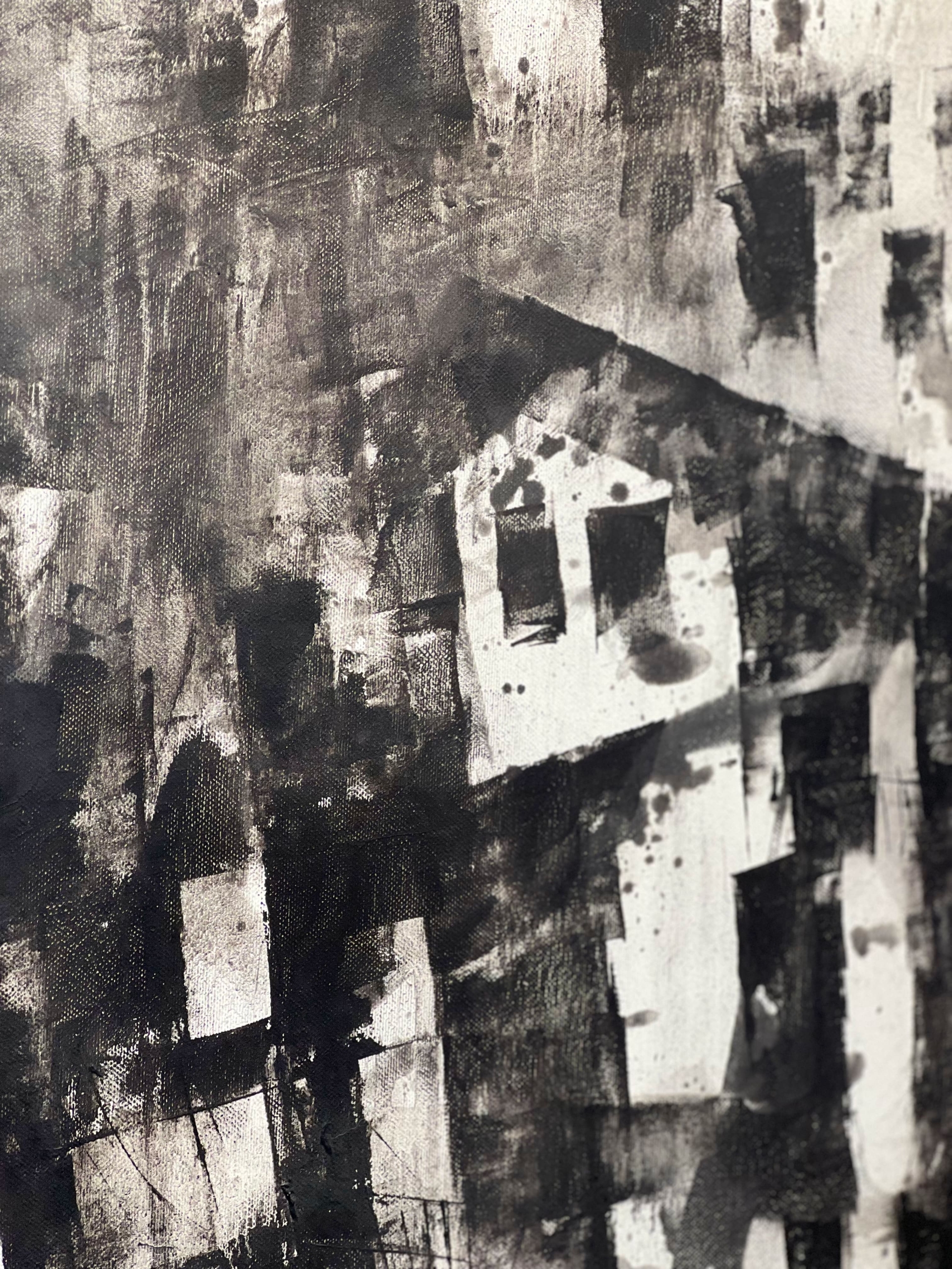 Le case si raccolgono in un abbraccio discreto, i tetti si sfiorano, le finestre si aprono appena per lasciar entrare la luce dorata del tramonto. Le vie strette e silenziose invitano lo sguardo a perdersi nei dettagli: un portone socchiuso, un muro screpolato, un’ombra che sfuma lentamente. Nulla è casuale — ogni pennellata è scelta per evocare emozione, per restituire quel senso di pace e intimità che solo i luoghi autentici sanno offrire.