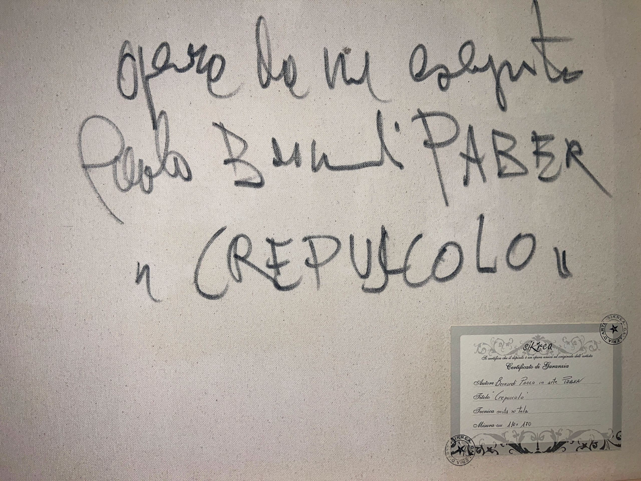 La tavolozza calda di Paber — avvolge la scena in un’atmosfera accogliente e malinconica. Le luci e le ombre si inseguono con equilibrio, creando un gioco armonioso che trasmette serenità e nostalgia. È come se la luce del tramonto si fosse fermata per un istante, trattenuta sulla tela per non svanire.