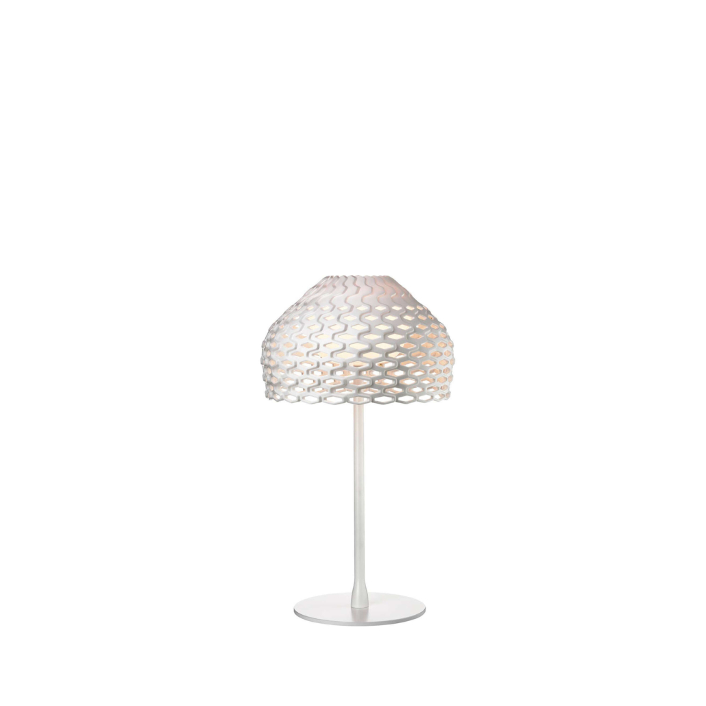 La lampada Tatou Table Flos nasce come interpretazione contemporanea di un’idea luminosa che unisce leggerezza visiva e presenza scenica. Il suo diffusore traforato deriva da una ricerca formale che guarda alle armature antiche e le traduce in un volume morbido e flessibile. La superficie perforata permette alla luce di espandersi con una qualità morbida, creando un ritmo visivo che cambia in base alla prospettiva. Ogni piccolo foro diventa parte di un disegno complesso che dialoga con l’ambiente senza mai risultare invadente. La lampada assume così un ruolo discreto ma caratterizzante, capace di arricchire ogni spazio con un tratto riconoscibile.